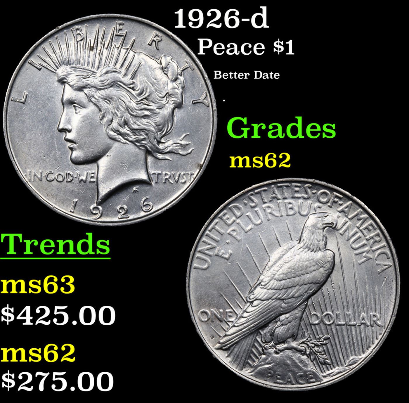 1926-d Peace Dollar $1 Grades Select Unc.