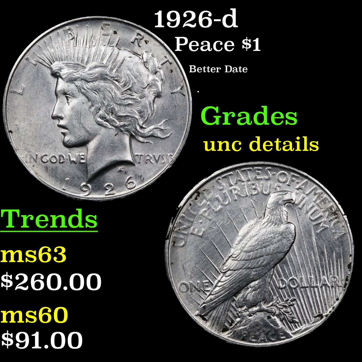 1926-d Peace Dollar $1 Grades Unc Details.