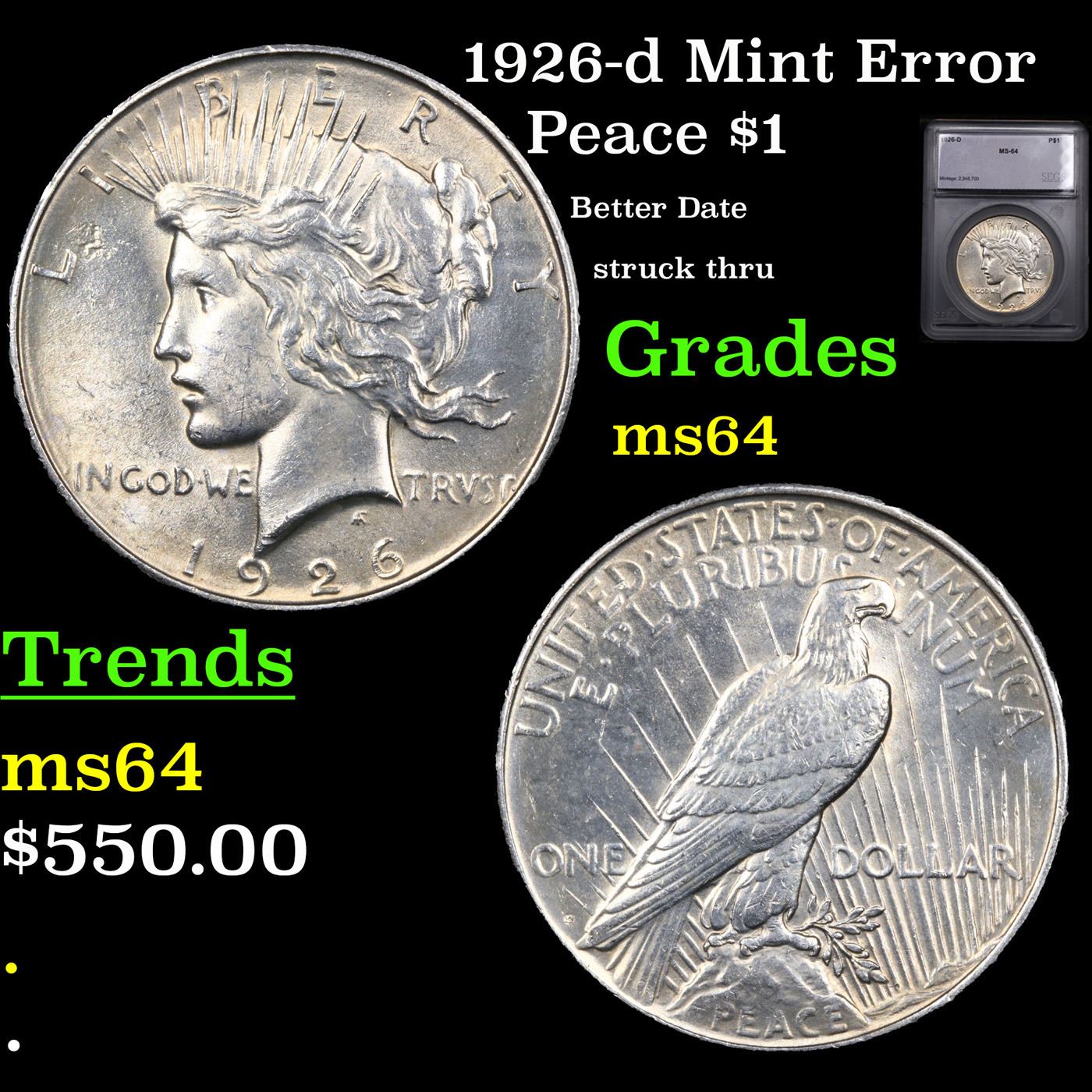 1926-d Mint Error Peace Dollar $1 Grades Choice Unc By SEGS.