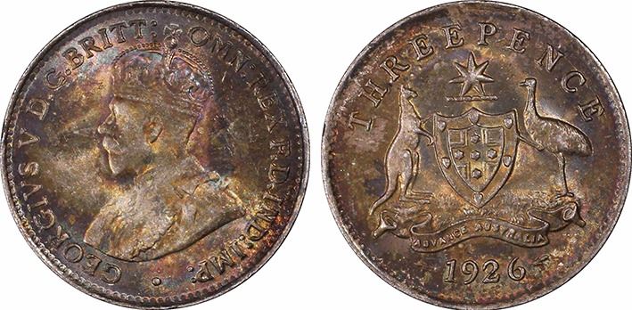 1926(m,sy) Australian Threepence - PCGS MS 64+
