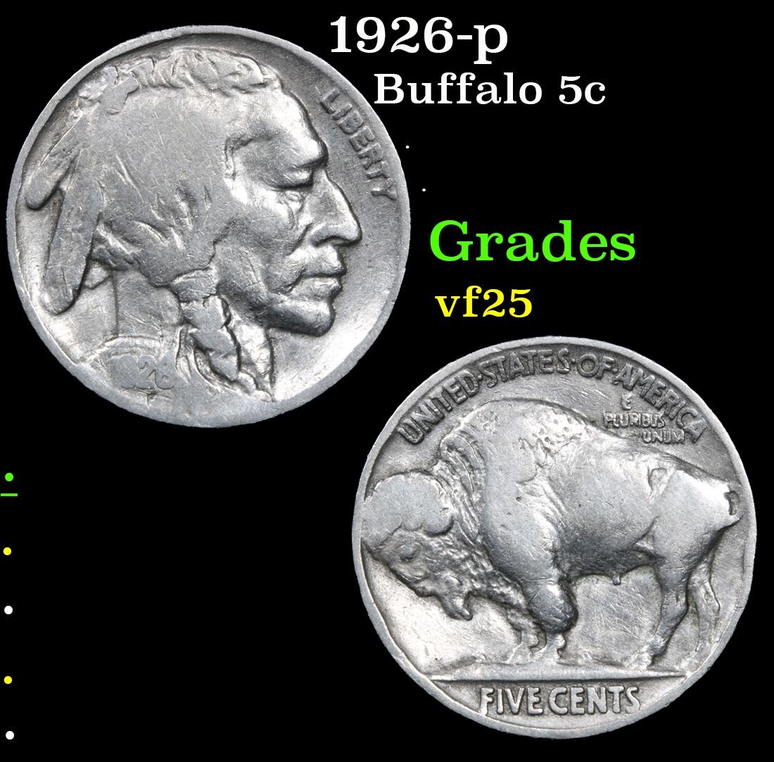 1926-p . . Buffalo Nickel 5c Grades vf+.