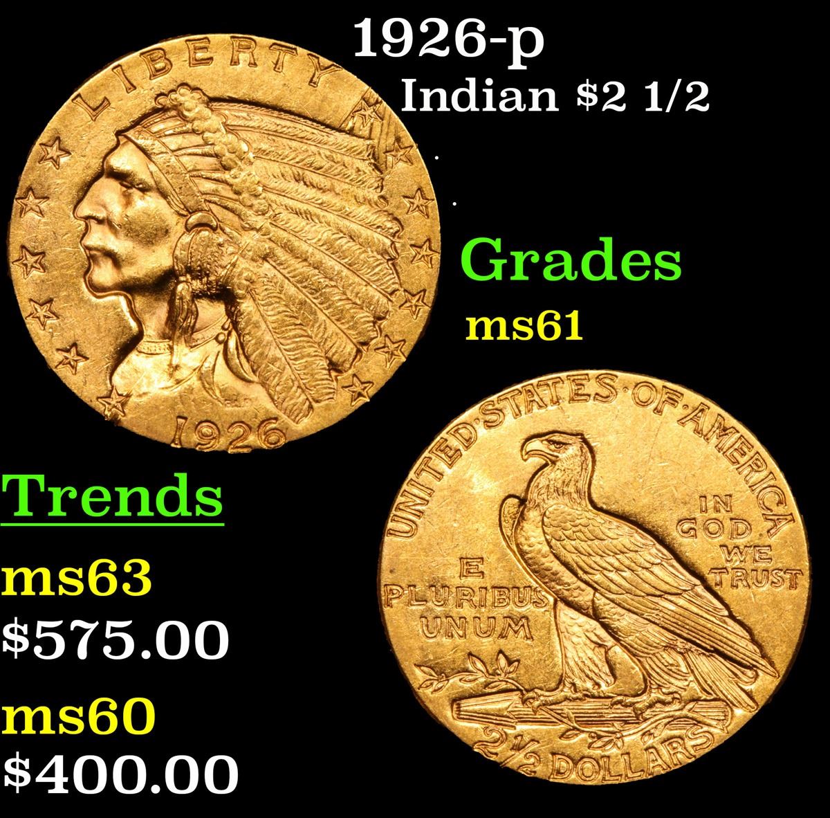 1926-p Gold Indian Quarter Eagle $2 1/2 Grades BU+.