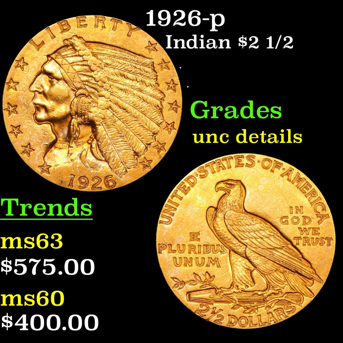 1926-p Gold Indian Quarter Eagle $2 1/2 Grades Unc Details.