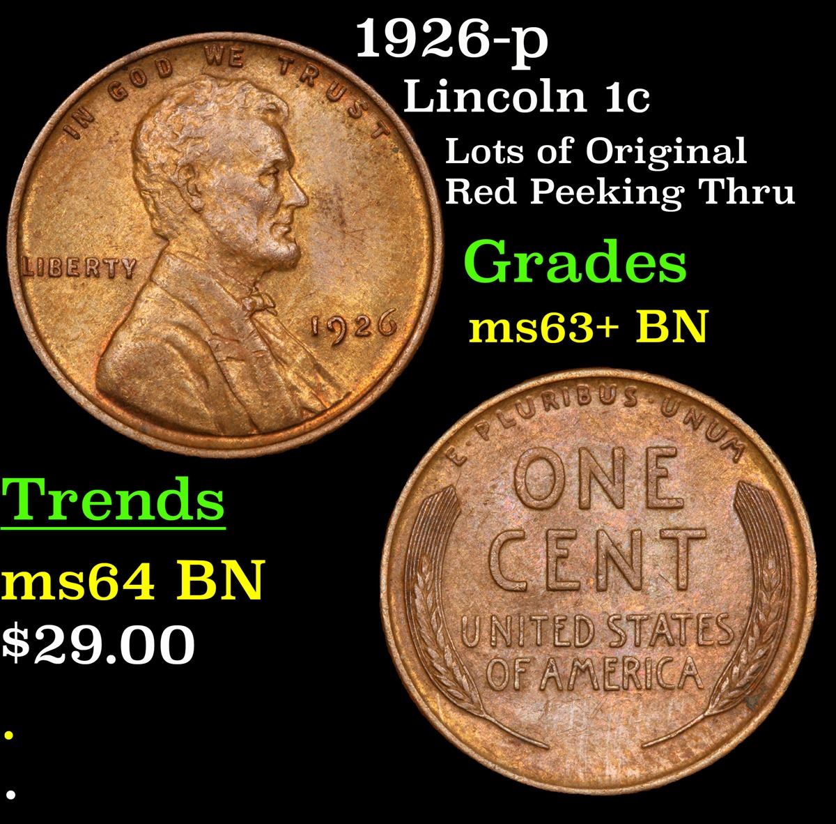 1926-p Lots of Original Red Peeking Thru . Lincoln Cent 1c Grades Select+ Unc BN.