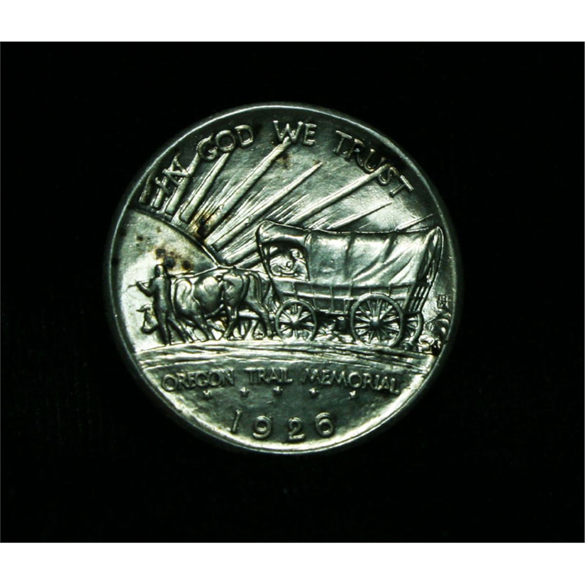 Nice lustrous example. One of the most beautifully designed coins in American History, Designed by the same engraver that designed the Buffalo Nickel, This coin Commemorates the Oregon Trail that brought thousands of Intrepid pioneers to the West in the 1830's and 40's. When Buying an Oregon Trail Commemorative, regardless of year and mint the Points to first show wear are the Indian’s hand and thigh on the obverse and the ox and the bows of the wagon’s cover on the reverse, these are the high points. NGC's Price Guide lists an ms63 at $174 and The Wholesale Greysheet lists ms63 at $146. Estimated Value $160