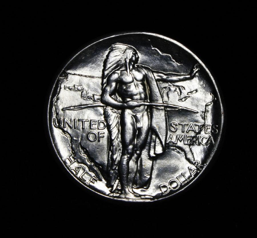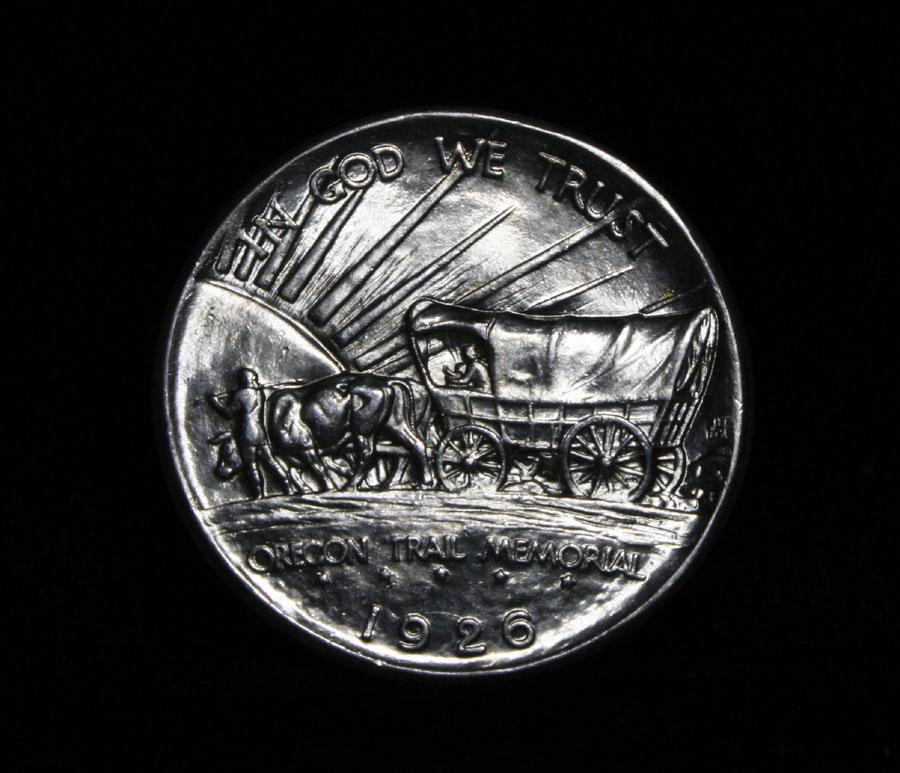 Stunning blast white example. A Great and Lustrous Gem. A fantastic striking of a Great and Beautiful coin. One of the most beautifully designed coins in American History, Designed by the same engraver that designed the Buffalo Nickel, This coin Commemorates the Oregon Trail that brought thousands of Intrepid pioneers to the West in the 1830's and 40's. When Buying an Oregon Trail Commemorative, regardless of year and mint the Points to first show wear are the Indian’s hand and thigh on the obverse and the ox and the bows of the wagon’s cover on the reverse, these are the high points. Coin World's Coin Values lists ms66 at $500 and The Wholesale Greysheet lists ms66 at $365. But those prices do not account for the vastly superior eye appeal of the rainbow toning. Estimated Value $500.