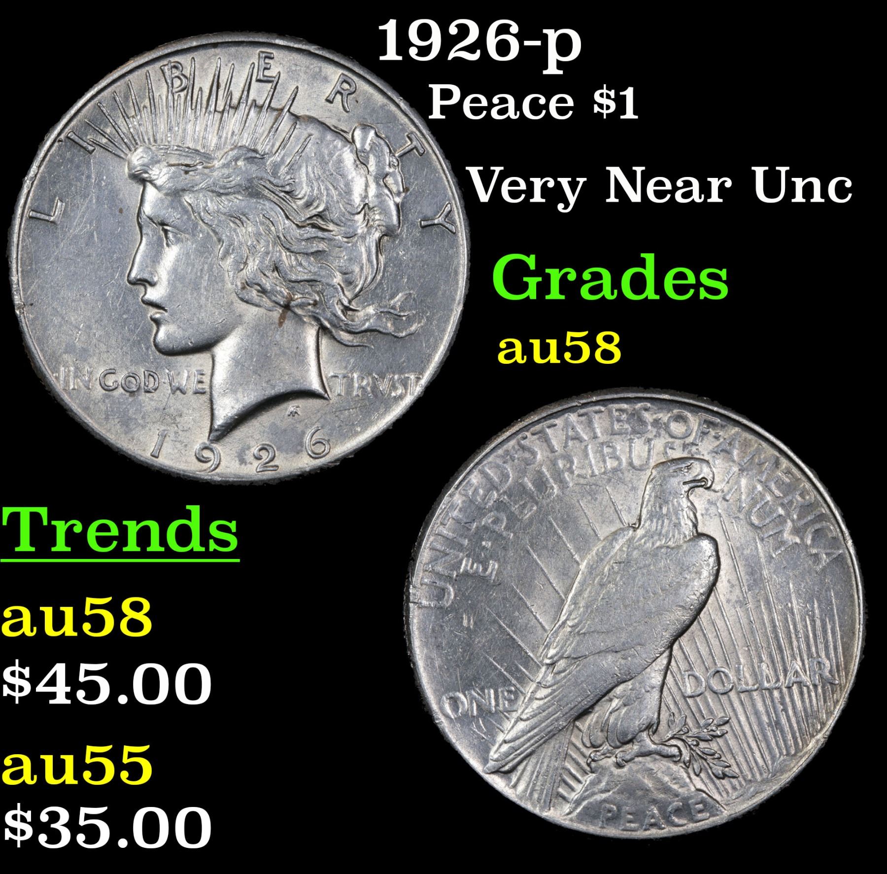 1926-p . Very Near Unc Peace Dollar $1 Grades Choice AU/BU Slider.