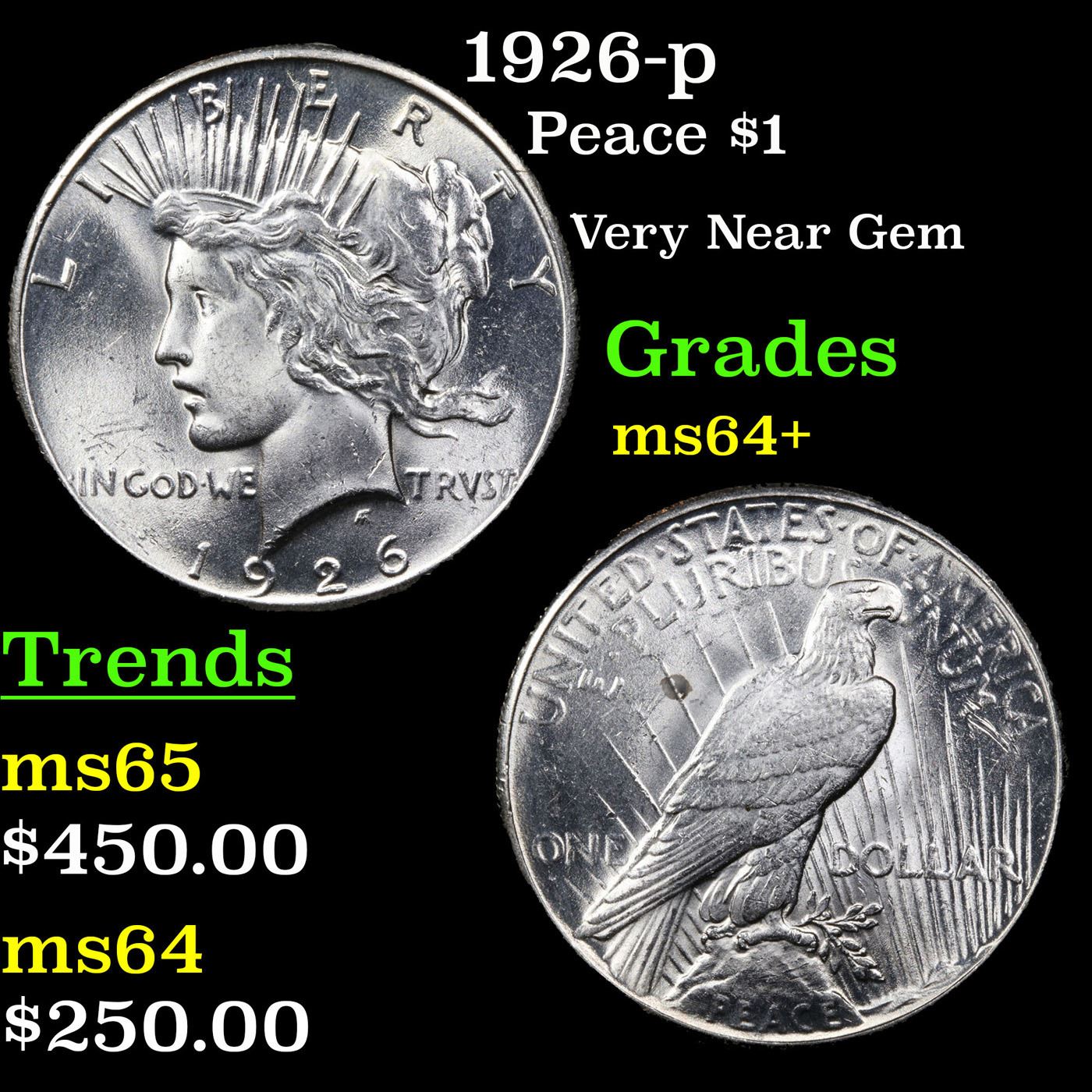 1926-p Peace Dollar $1 Grades Choice+ Unc.