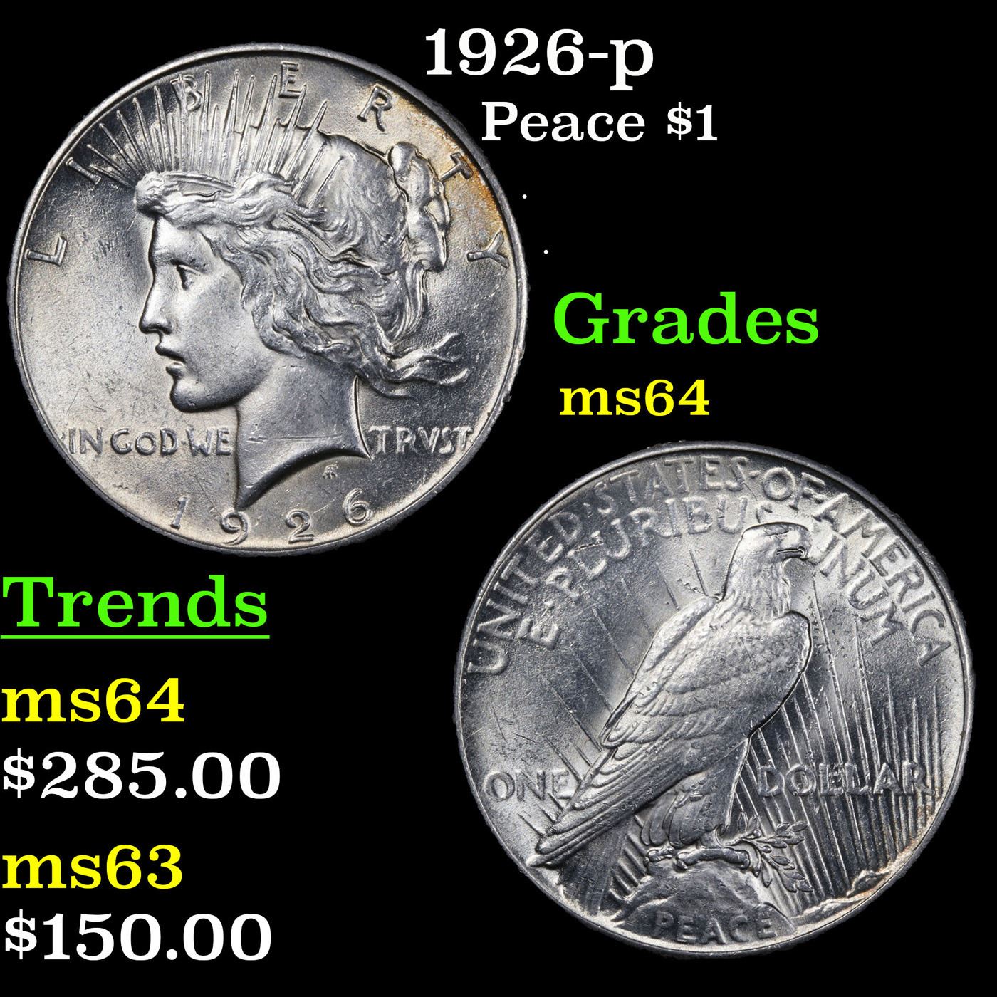 1926-p Peace Dollar $1 Grades Choice Unc.