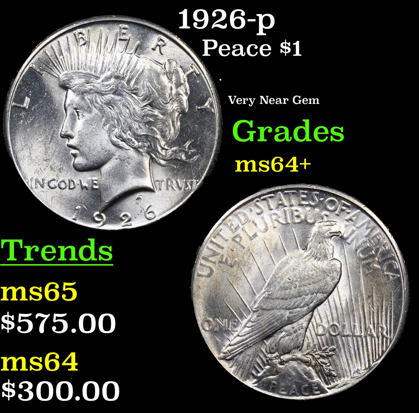 1926-p Peace Dollar $1 Grades Choice+ Unc.