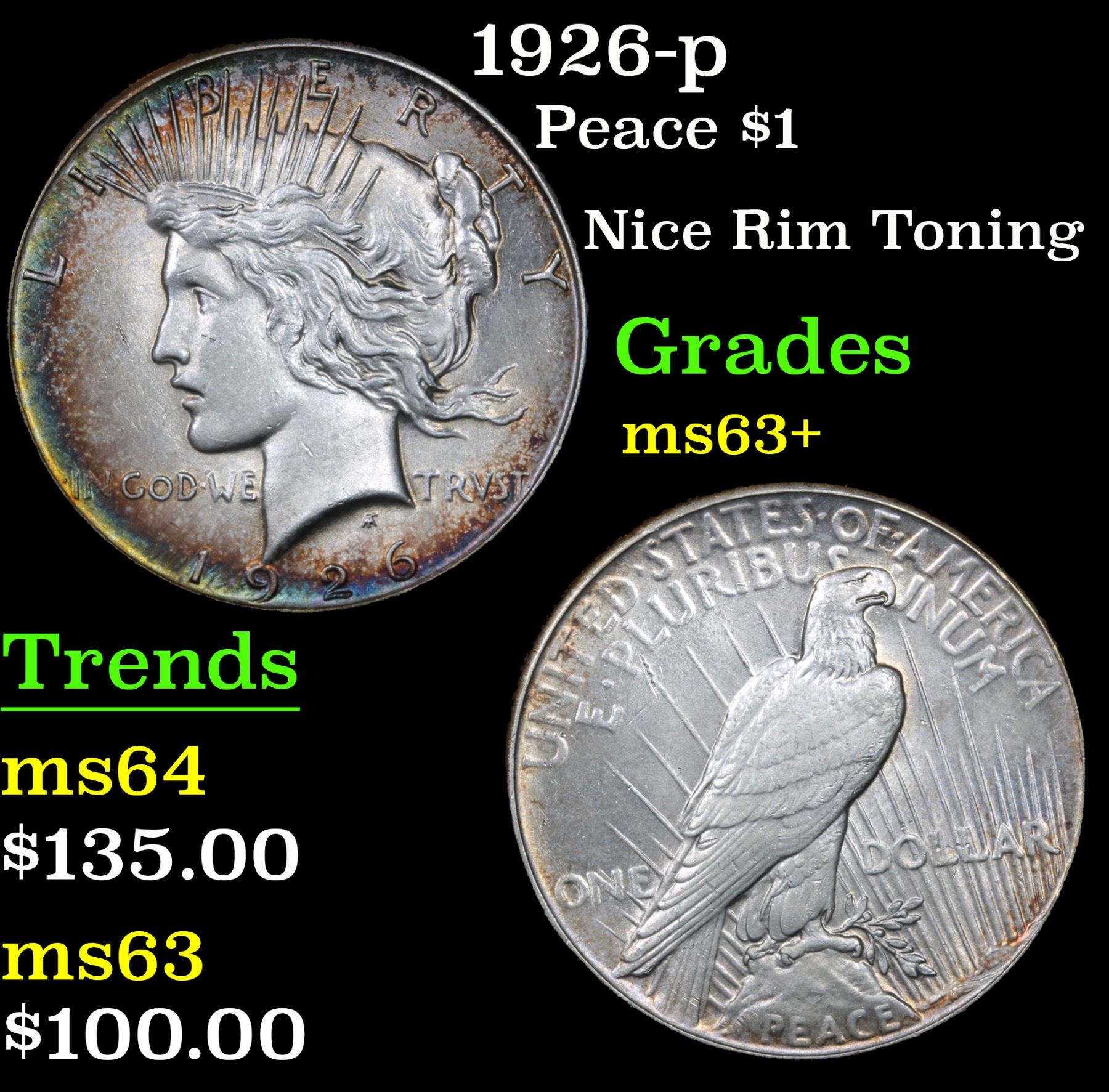 1926-p Nice Rim Toning . Peace Dollar $1 Grades Select+ Unc.