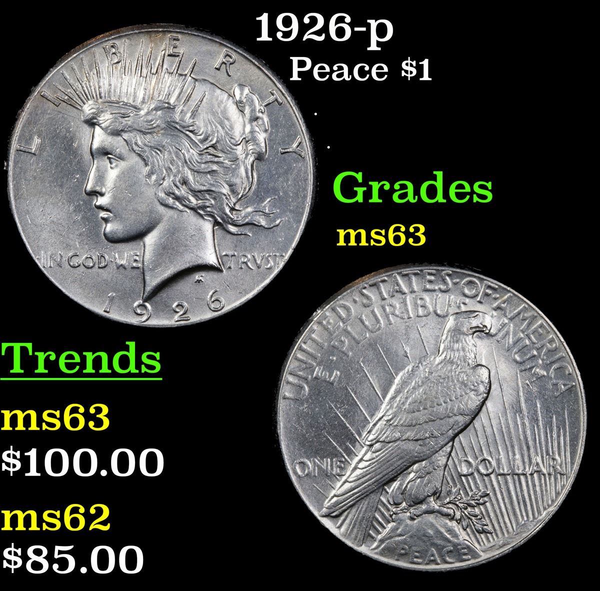 1926-p Peace Dollar $1 Grades Select Unc.