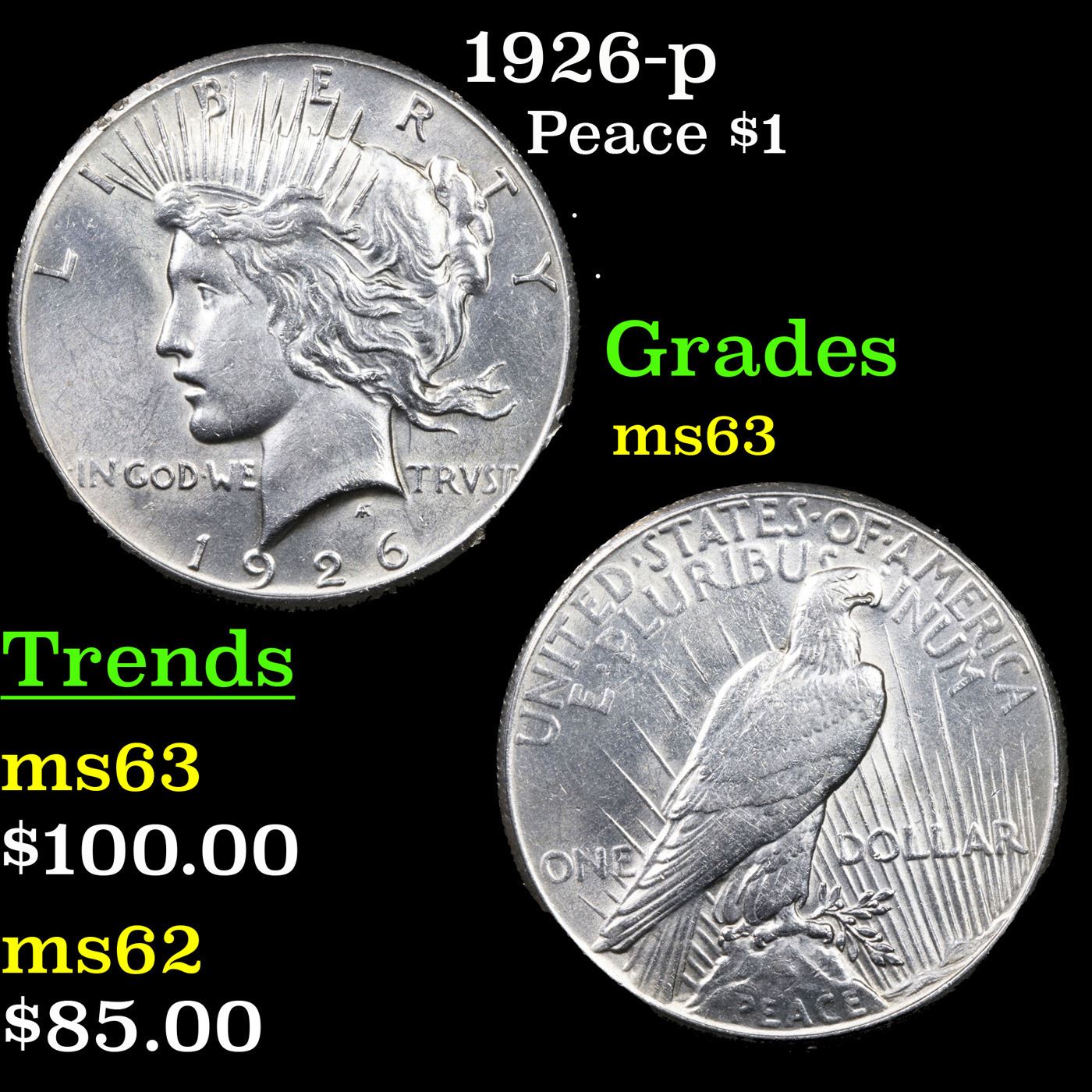 1926-p Peace Dollar $1 Grades Select Unc.