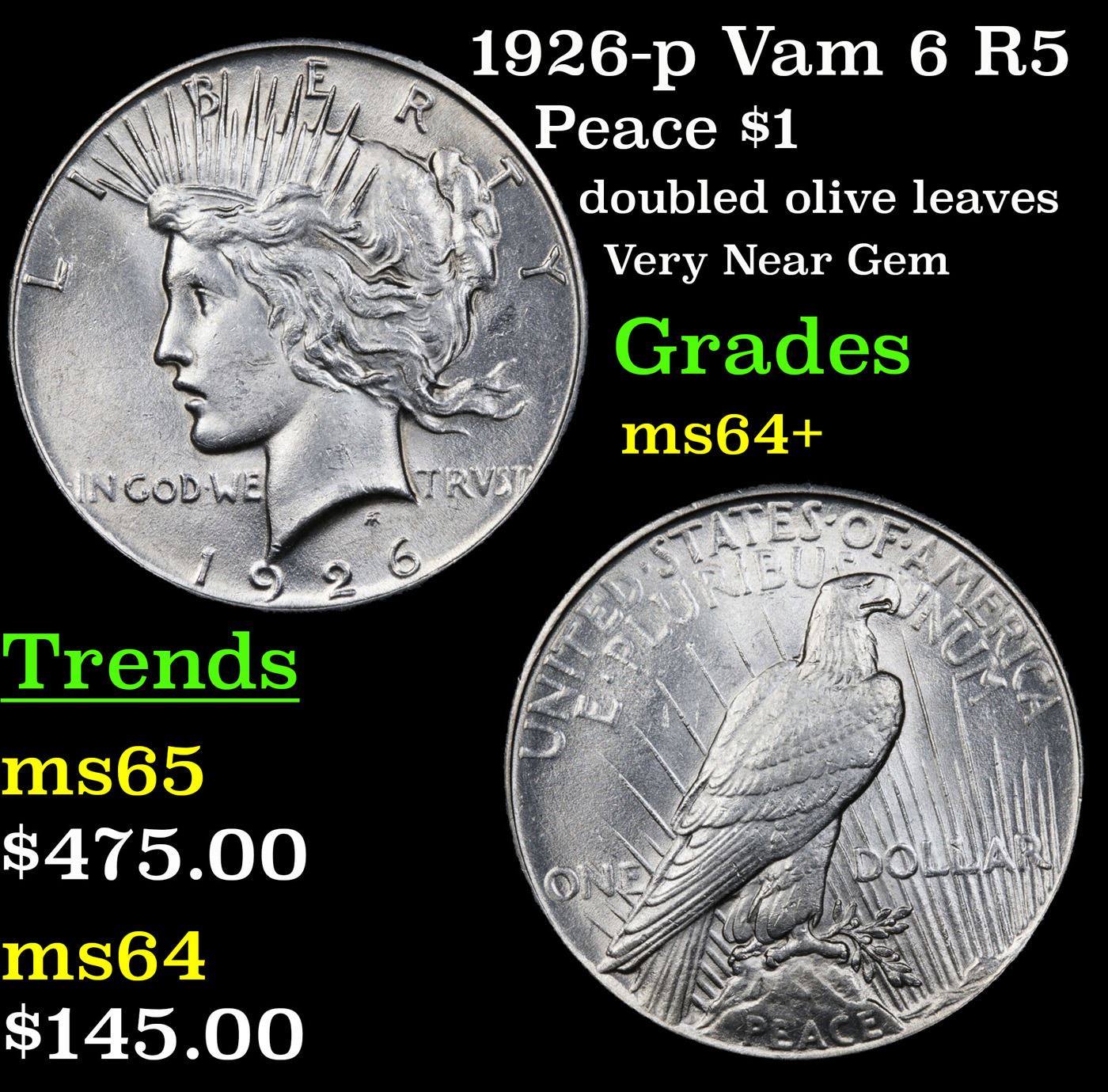 1926-p Vam 6 R5 Peace Dollar $1 Grades Choice+ Unc.