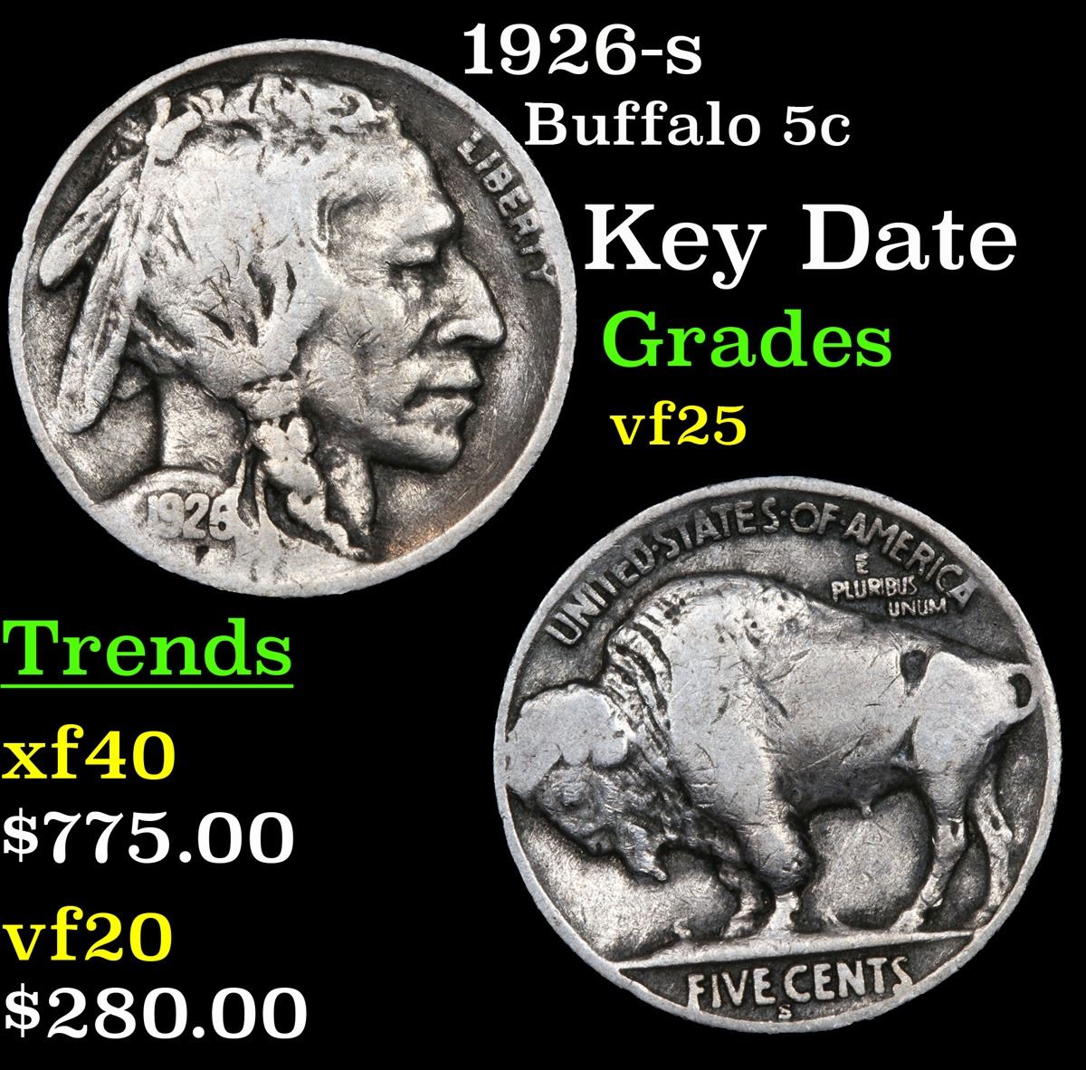 1925-s Semi Key Date . Buffalo Nickel 5c Grades vf+.