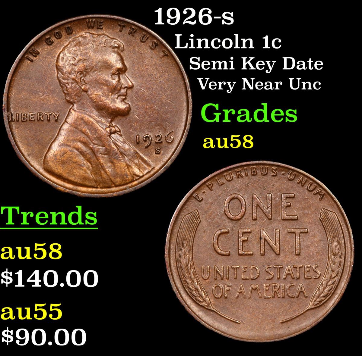 1926-s Lincoln Cent 1c Grades Choice AU/BU Slider.
