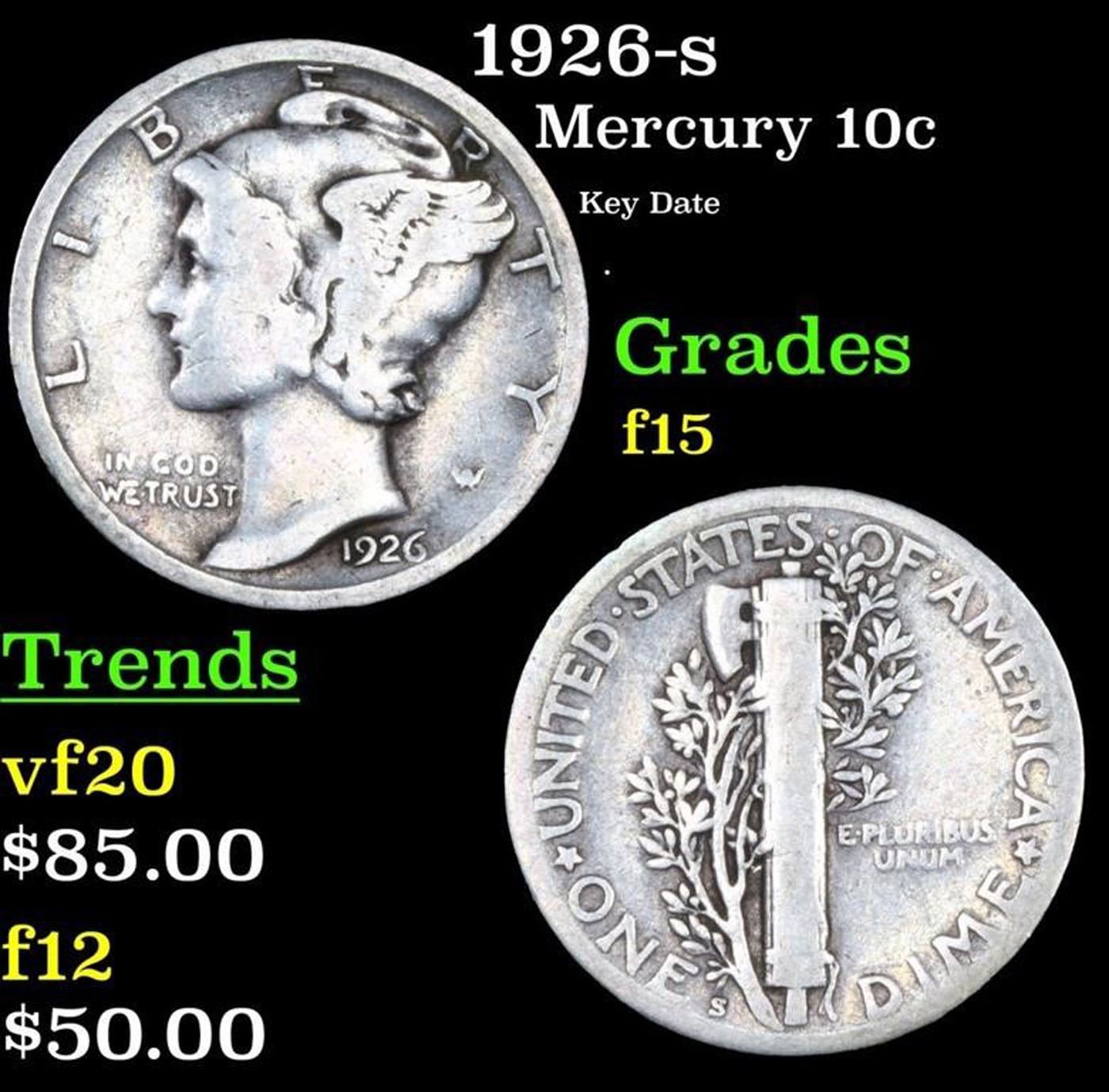 1926-s Mercury Dime 10c Grades f+.