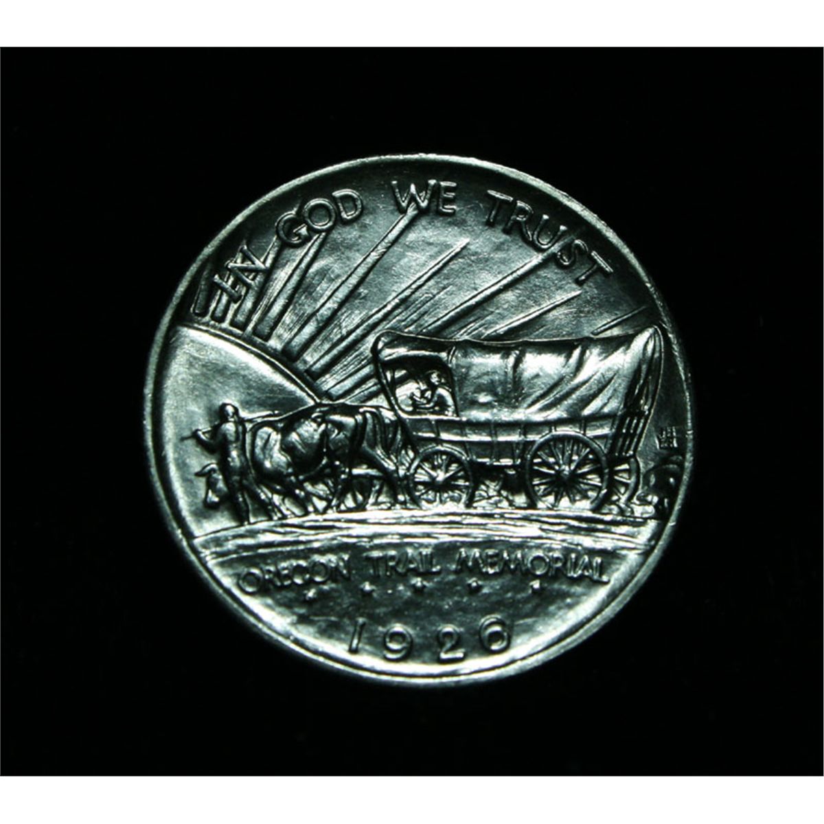 A great blast white example of one of the most beautifully designed coins in American History, Designed by the same engraver that designed the Buffalo Nickel, This coin Commemorates the Oregon Trail that brought thousands of Intrepid pioneers to the West in the 1830's and 40's. When Buying an Oregon Trail Commemorative, regardless of year and mint the Points to first show wear are the Indian’s hand and thigh on the obverse and the ox and the bows of the wagon’s cover on the reverse, these are the high points. Coin World's Coin Values lists ms65 at $310 and The Wholesale Greysheet lists ms65 at $265. Estimated Value $300.