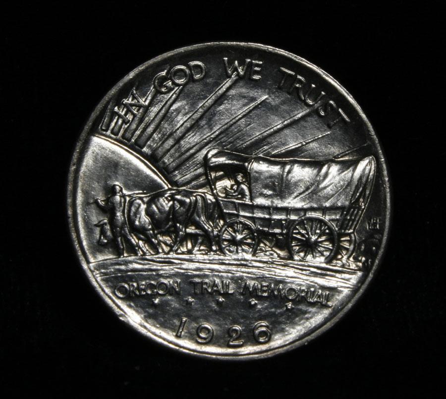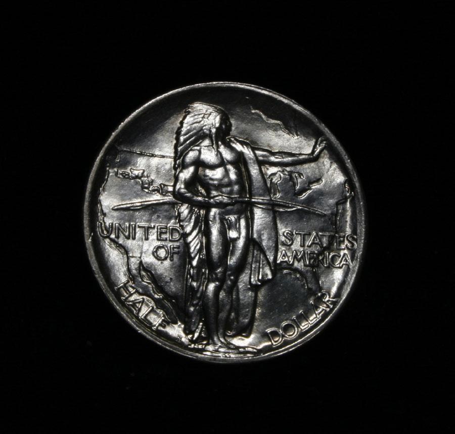 Stunning blast white example. A Great and Lustrous Gem. A fantastic striking of a Great and Beautiful coin. One of the most beautifully designed coins in American History, Designed by the same engraver that designed the Buffalo Nickel, This coin Commemorates the Oregon Trail that brought thousands of Intrepid pioneers to the West in the 1830's and 40's. When Buying an Oregon Trail Commemorative, regardless of year and mint the Points to first show wear are the Indian’s hand and thigh on the obverse and the ox and the bows of the wagon’s cover on the reverse, these are the high points. Coin World's Coin Values lists ms66 at $500 and The Wholesale Greysheet lists ms66 at $365. But those prices do not account for the vastly superior eye appeal of the rainbow toning. Estimated Value $500.