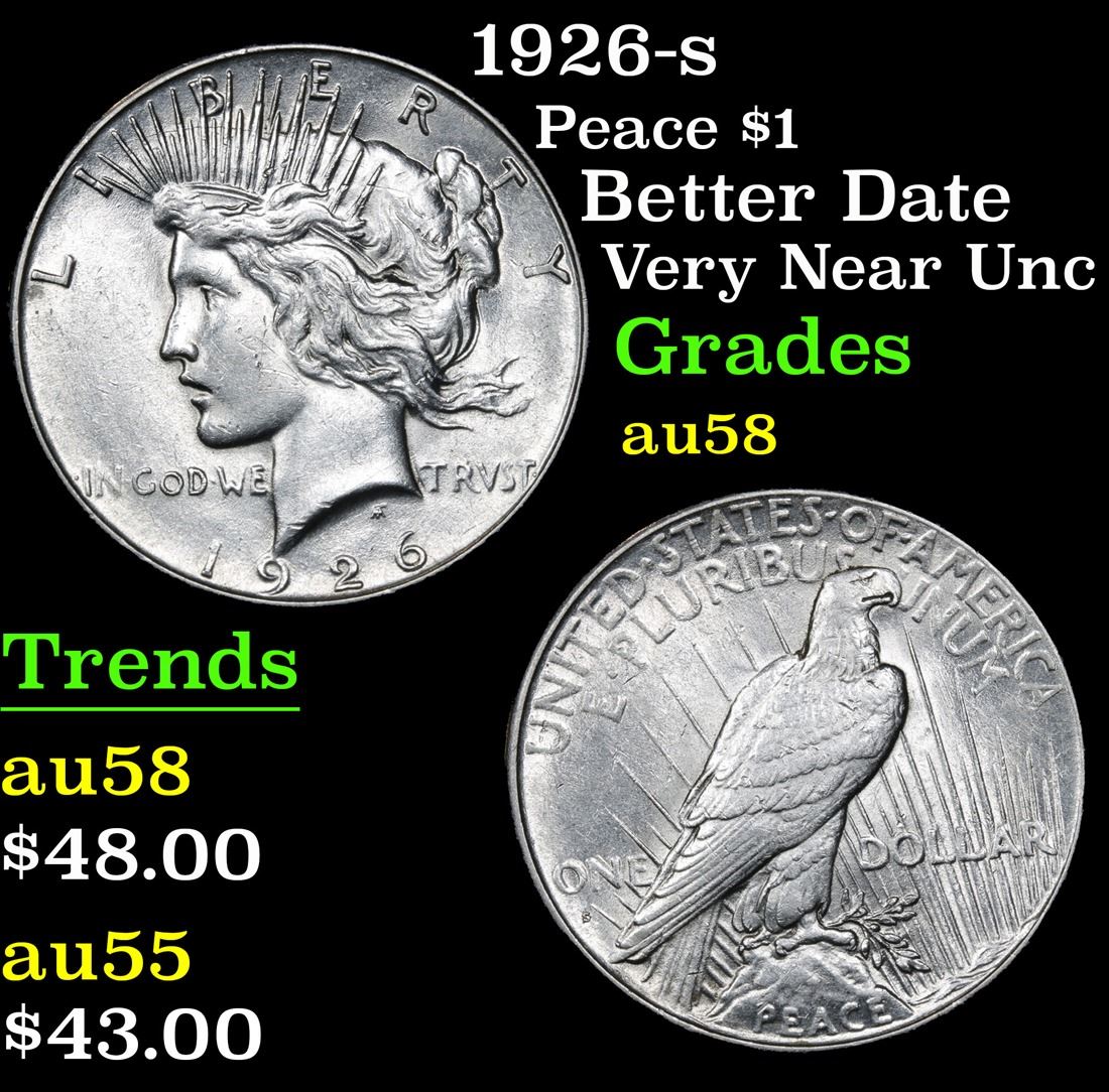 1926-s Better Date Very Near Unc Peace Dollar $1 Grades Choice AU/BU Slider.