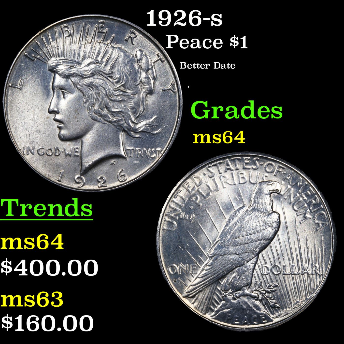 1926-s Peace Dollar $1 Grades Choice Unc.