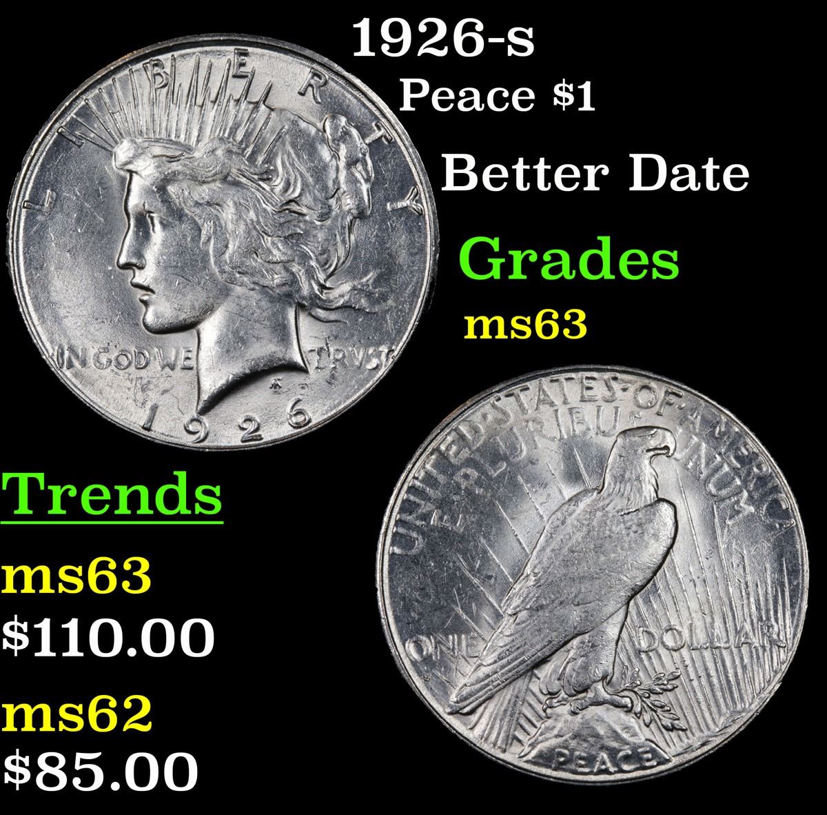 1926-s Peace Dollar $1 Grades Select Unc.