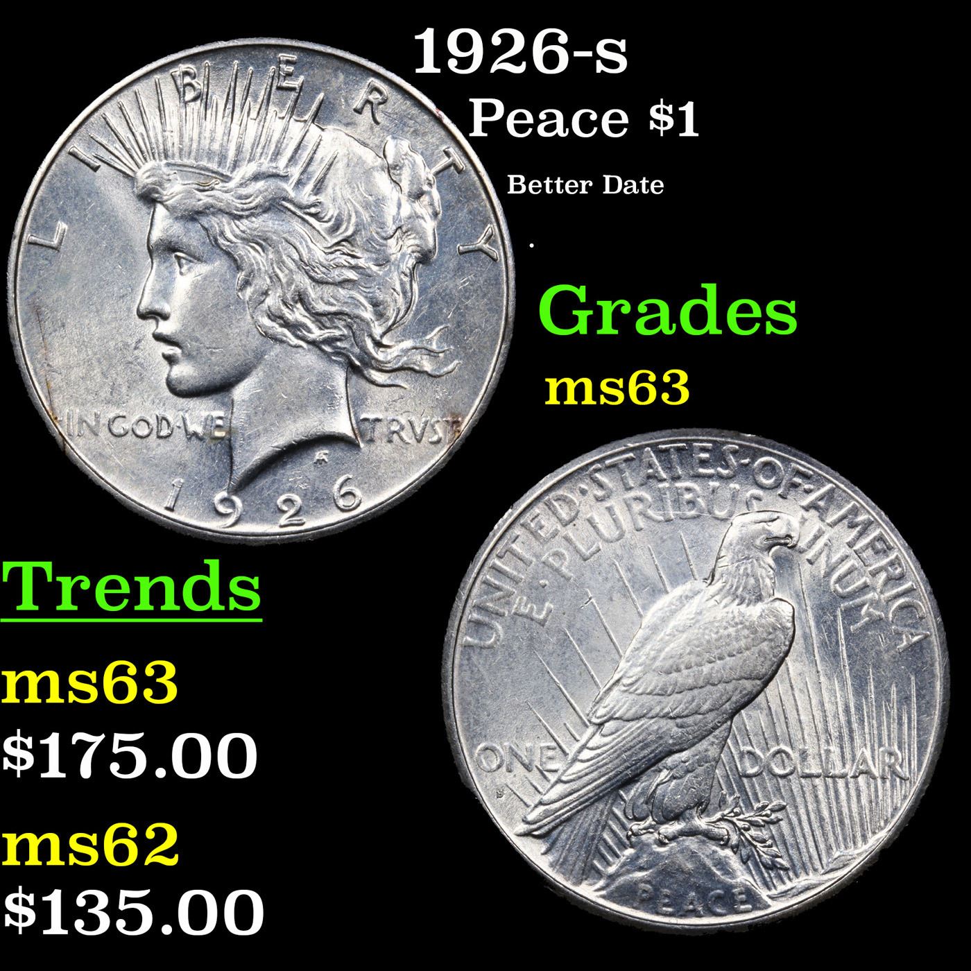 1926-s Peace Dollar $1 Grades Select Unc.