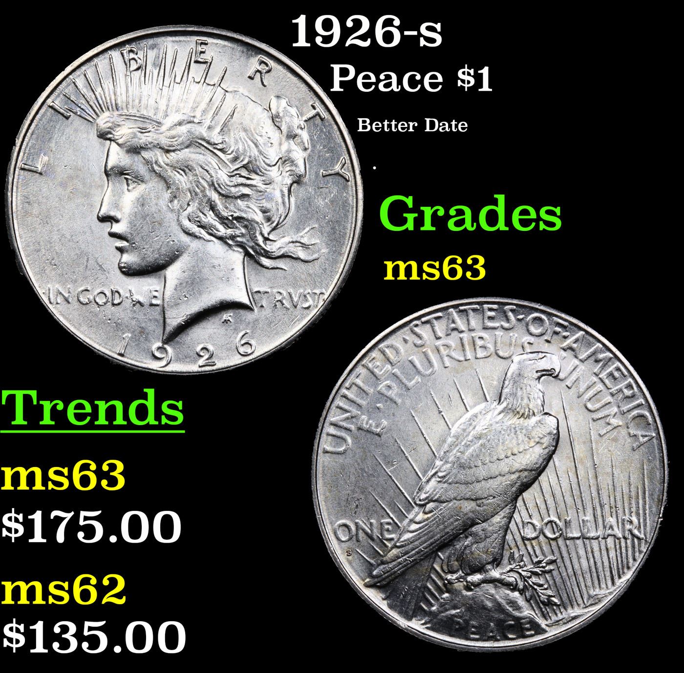 1926-s Peace Dollar $1 Grades Select Unc.