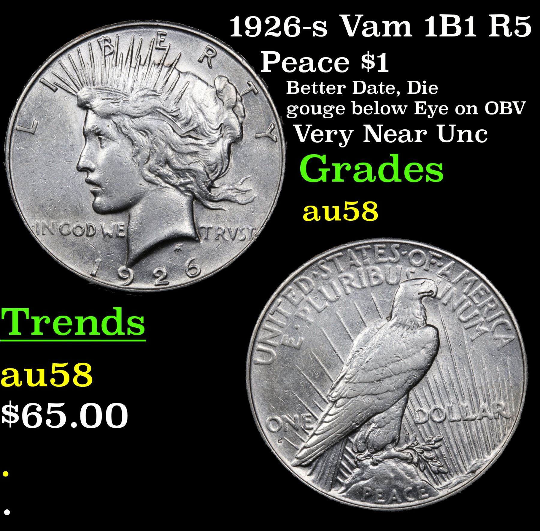1926-s Vam 1B1 R5 Peace Dollar $1 Grades Choice AU/BU Slider.
