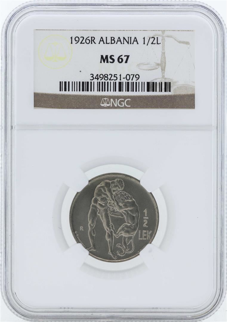 One 1926R Albania 1/2 Leku Coin NGC MS67. NGC Certified.