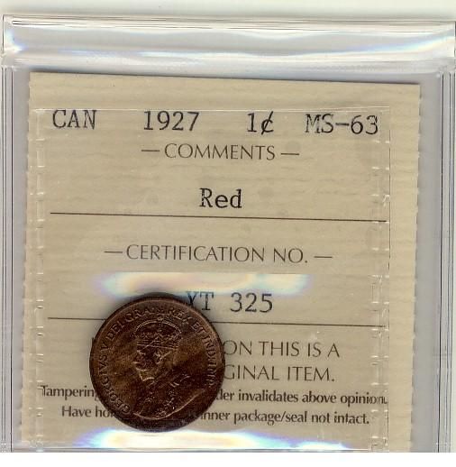 1927 1¢ ICCS MS63 Red