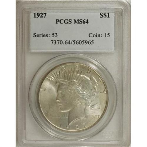 <B>1927 $1 MS64 PCGS.</B></I> PCGS Population (1228/218). NGC Census: (709/74). Mintage: 848,000. Numismedia Wsl. Price for NGC/PCGS coin in MS64: $380. (#7370)<BR><BR><B>Coin Engraver:</B> Anthony de Francisci<BR><BR><b>Shipping:</b> Coins & Currency (<a target="_blank" href="http://www.heritageauctions.com/common/shipping.php">view shipping information</a>)