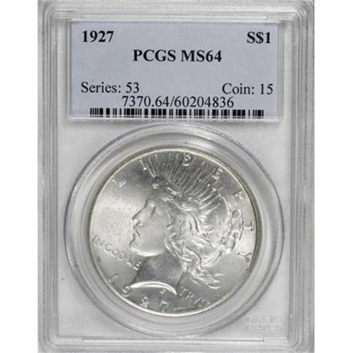 <B>1927 $1 MS64 PCGS.</B></I> PCGS Population (1232/218). NGC Census: (716/74). Mintage: 848,000. Numismedia Wsl. Price for NGC/PCGS coin in MS64: $380. (#7370)<BR><BR><B>Coin Engraver:</B> Anthony de Francisci<BR><BR><b>Shipping:</b> Coins & Currency (<a target="_blank" href="http://www.heritageauctions.com/common/shipping.php">view shipping information</a>)