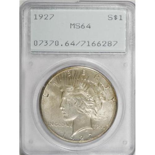 <B>1927 $1 MS64 PCGS.</B></I> PCGS Population (1259/220). NGC Census: (716/74). Mintage: 848,000. Numismedia Wsl. Price for NGC/PCGS coin in MS64: $380. (#7370)<BR><BR><B>Coin Engraver:</B> Anthony de Francisci<BR><BR><b>Shipping:</b> Coins & Currency (<a target="_blank" href="http://www.heritageauctions.com/common/shipping.php">view shipping information</a>)