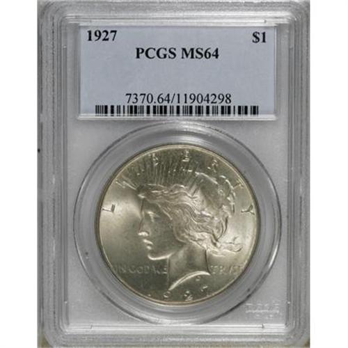 <B>1927 $1 MS64 PCGS.</B></I> PCGS Population (1301/231). NGC Census: (738/80). Mintage: 848,000. Numismedia Wsl. Price for NGC/PCGS coin in MS64: $420. (#7370)<BR><BR><B>Coin Engraver:</B> Anthony de Francisci<BR><BR><b>Shipping:</b> Coins & Currency (<a target="_blank" href="http://www.heritageauctions.com/common/shipping.php">view shipping information</a>)