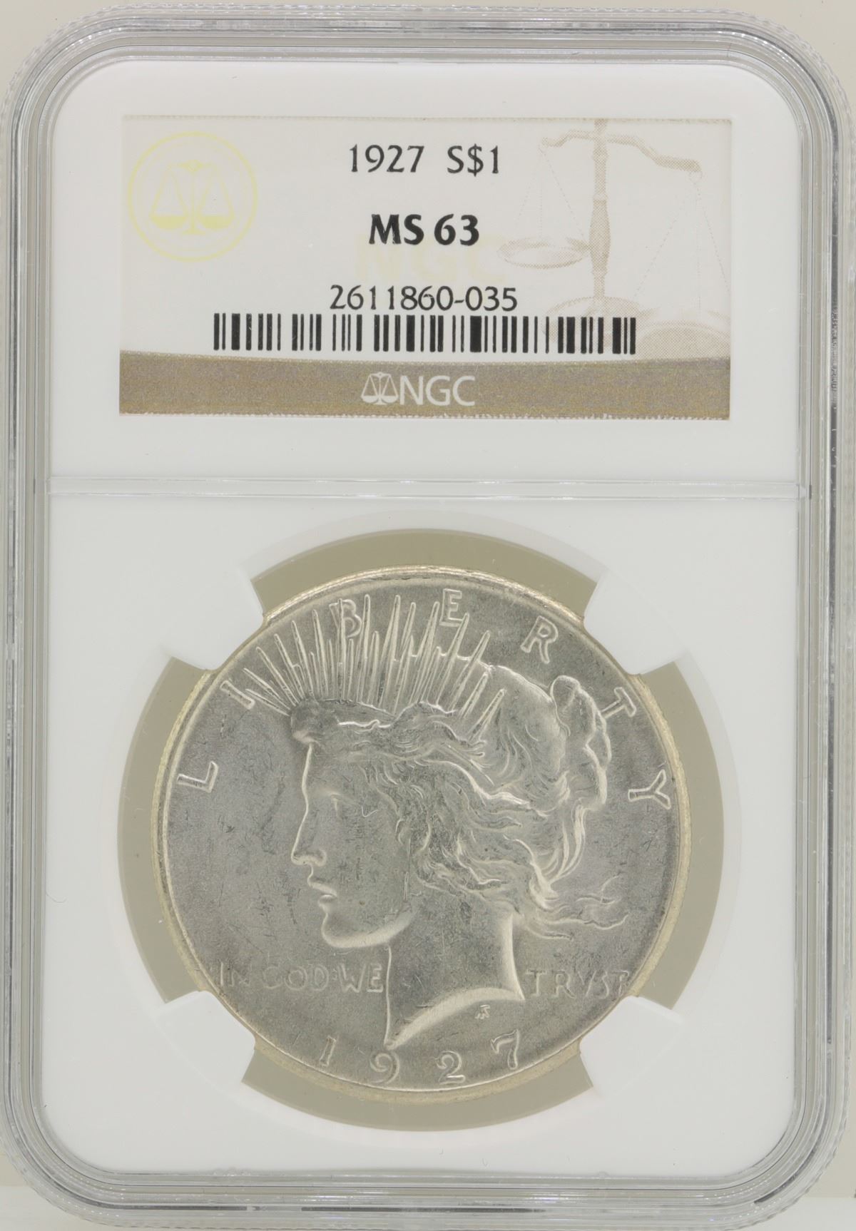 One 1927 $1 Peace Silver Dollar Coin NGC MS63.