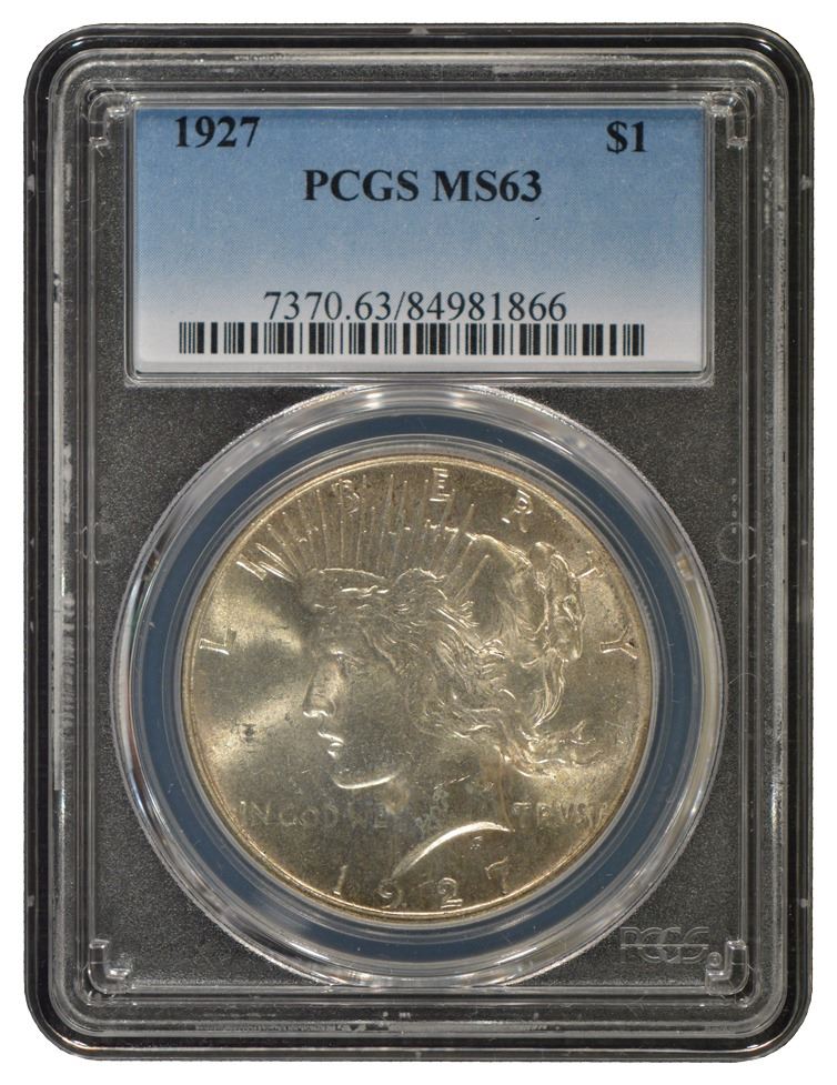 One 1927 $1 Peace Silver Dollar Coin PCGS MS63.