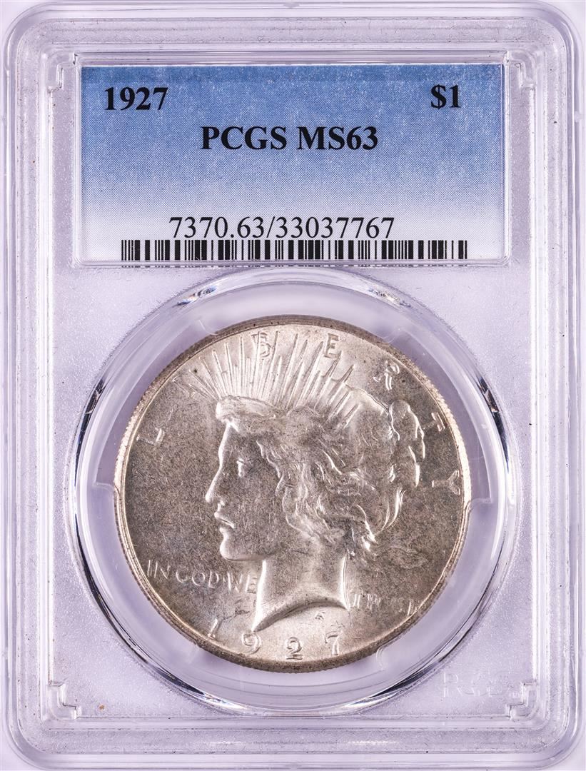 One 1927 $1 Peace Silver Dollar Coin PCGS MS63. PCGS Graded.