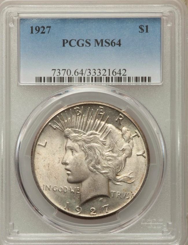 One 1927 $1 Peace Silver Dollar Coin PCGS MS64.