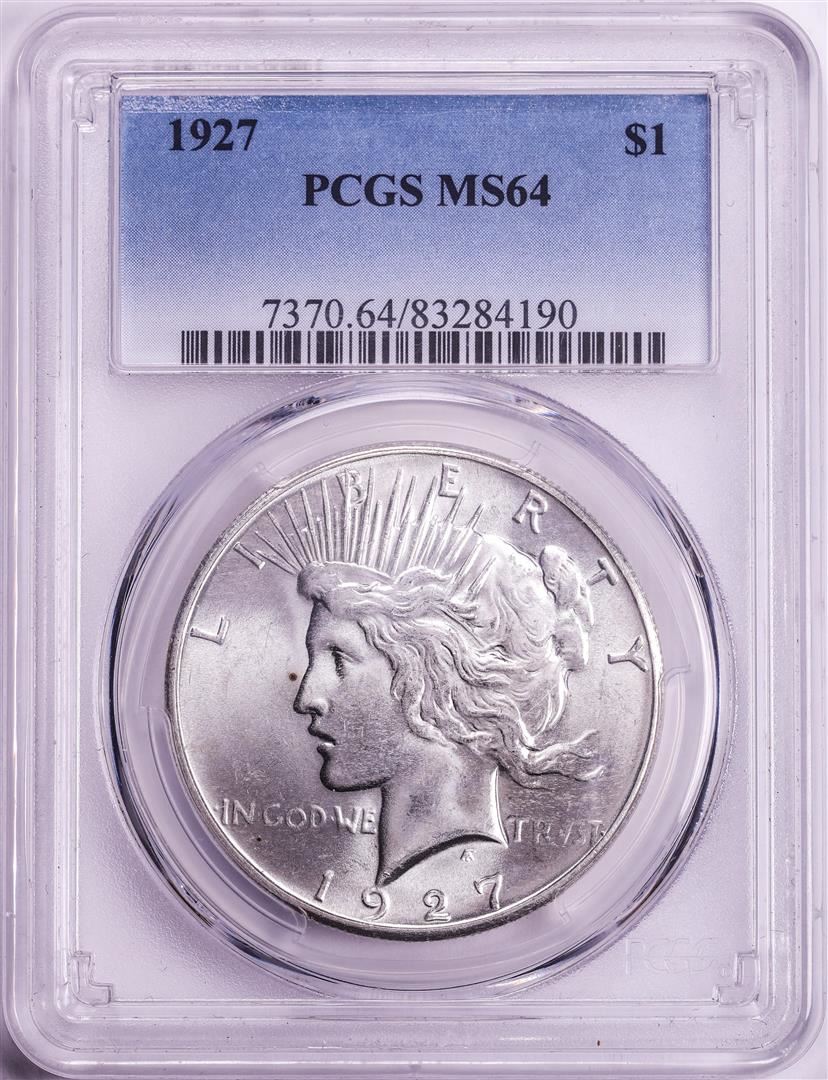 One 1927 $1 Peace Silver Dollar Coin PCGS MS64. PCGS Graded.