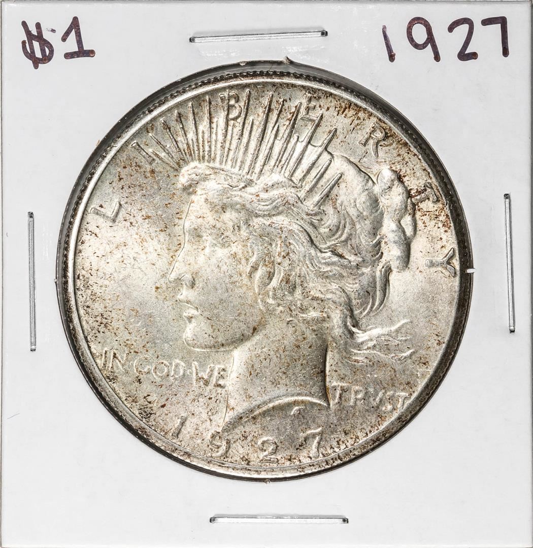 One 1927 $1 Peace Silver Dollar Coin.