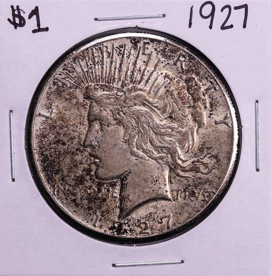 One 1927 $1 Peace Silver Dollar Coin.