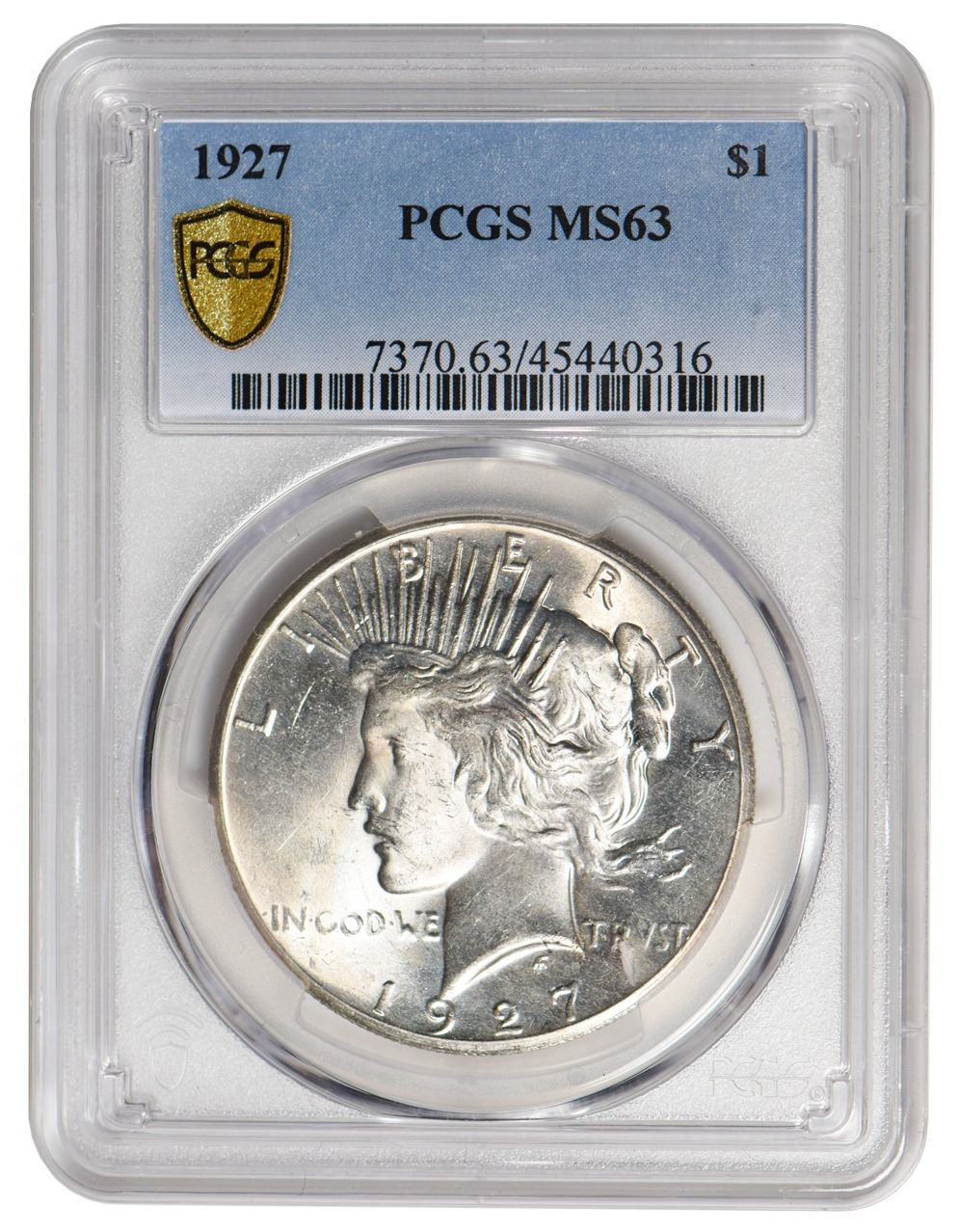 One 1927 $1 Peace Silver Dollar NGC MS63.