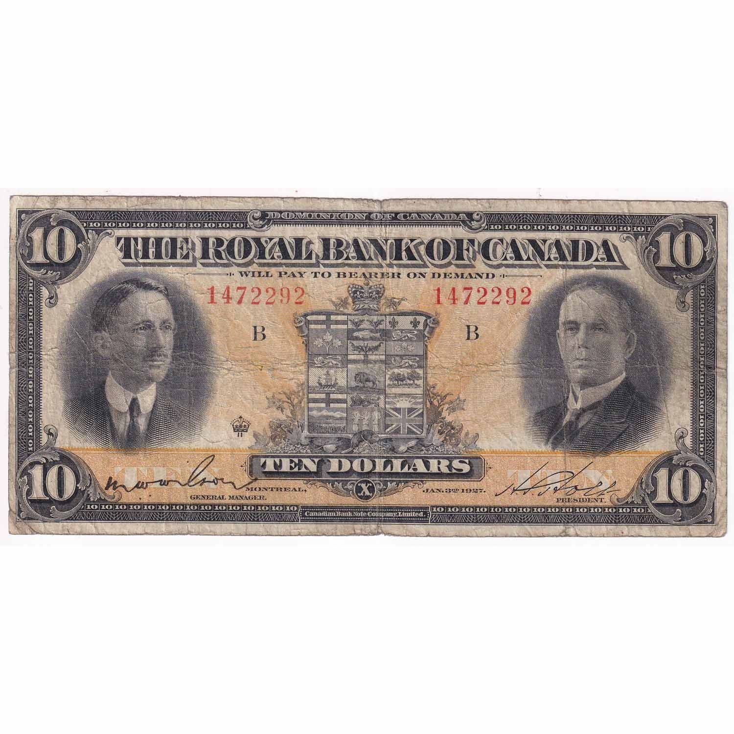 1927 $10 630-14-08 Royal Bank of Canada Note Wilson Signature VG (tear)