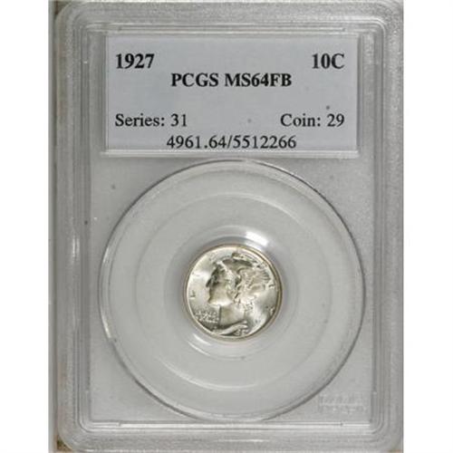 <B>1927 10C MS64 Full Bands PCGS.</B></I> PCGS Population (182/291). NGC Census: (109/98). Mintage: 28,080,000. Numismedia Wsl. Price for NGC/PCGS coin in MS64: $115. (#4961)<BR><BR><B>Coin Engraver:</B> Adolph A. Weinman<BR><BR><b>Shipping:</b> Coins & Currency (<a target="_blank" href="http://www.heritageauctions.com/common/shipping.php">view shipping information</a>)