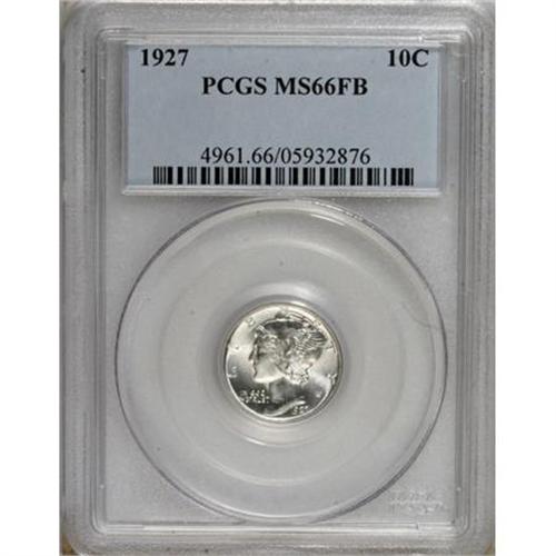 <B>1927 10C MS66 Full Bands PCGS.</B></I> PCGS Population (91/15). NGC Census: (21/5). Mintage: 28,080,000. Numismedia Wsl. Price for NGC/PCGS coin in MS66: $700. (#4961)<BR><BR><B>Coin Engraver:</B> Adolph A. Weinman<BR><BR><b>Shipping:</b> Coins & Currency (<a target="_blank" href="http://www.heritageauctions.com/common/shipping.php">view shipping information</a>\)