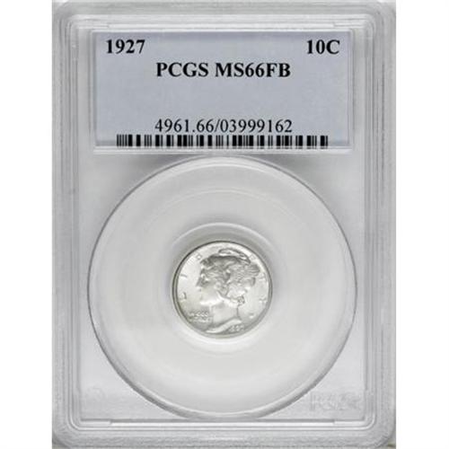 <B>1927 10C MS66 Full Bands PCGS.</B></I> PCGS Population (92/15). NGC Census: (24/5). Mintage: 28,080,000. Numismedia Wsl. Price for NGC/PCGS coin in MS66: $600. (#4961)<BR><BR><B>Coin Engraver:</B> Adolph A. Weinman<BR><BR><b>Shipping:</b> Coins & Currency (<a target="_blank" href="http://www.heritageauctions.com/common/shipping.php">view shipping information</a>)