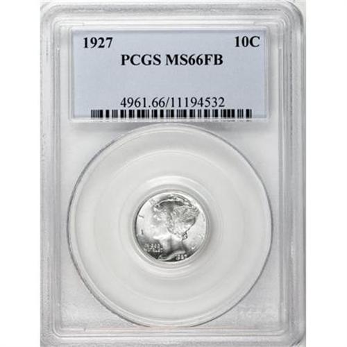 <B>1927 10C MS66 Full Bands PCGS.</B></I> PCGS Population (92/15). NGC Census: (24/5). Mintage: 28,080,000. Numismedia Wsl. Price for NGC/PCGS coin in MS66: $600. (#4961)<BR><BR><B>Coin Engraver:</B> Adolph A. Weinman<BR><BR><b>Shipping:</b> Coins & Currency (<a target="_blank" href="http://www.heritageauctions.com/common/shipping.php">view shipping information</a>)