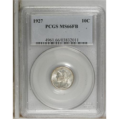 <B>1927 10C MS66 Full Bands PCGS.</B></I> PCGS Population (91/15). NGC Census: (21/5). Mintage: 28,080,000. Numismedia Wsl. Price for NGC/PCGS coin in MS66: $700. (#4961)<BR><BR><b>Shipping:</b> Coins & Currency (<a target="_blank" href="http://www.heritageauctions.com/common/shipping.php">view shipping information</a>)