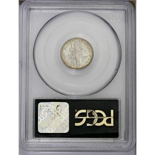 <B>1927<10C> MS66 Full Bands PCGS.</B></I> Steel-green and pastel rose toning occurs in the fields and centers, with attractive red-gold and orange-gold color near the reverse periphery. Fully struck and nearly pristine, this is a truly lovely Premium Gem Mercury dime. Population: 82 in 66, 14 finer (3/06).